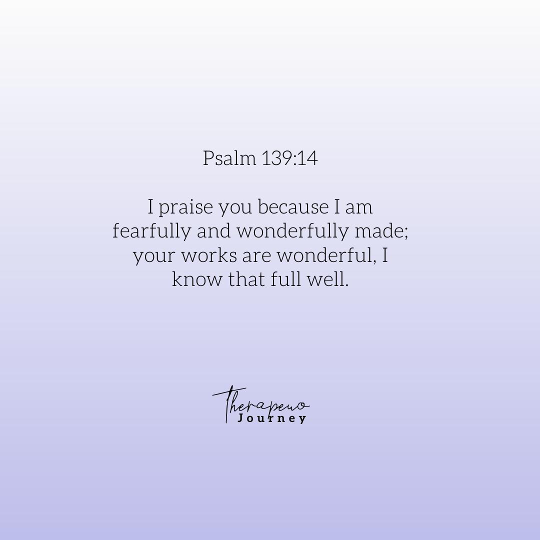 I praise you because I am fearfully and wonderfully made; your works are wonderful, I know that full well.