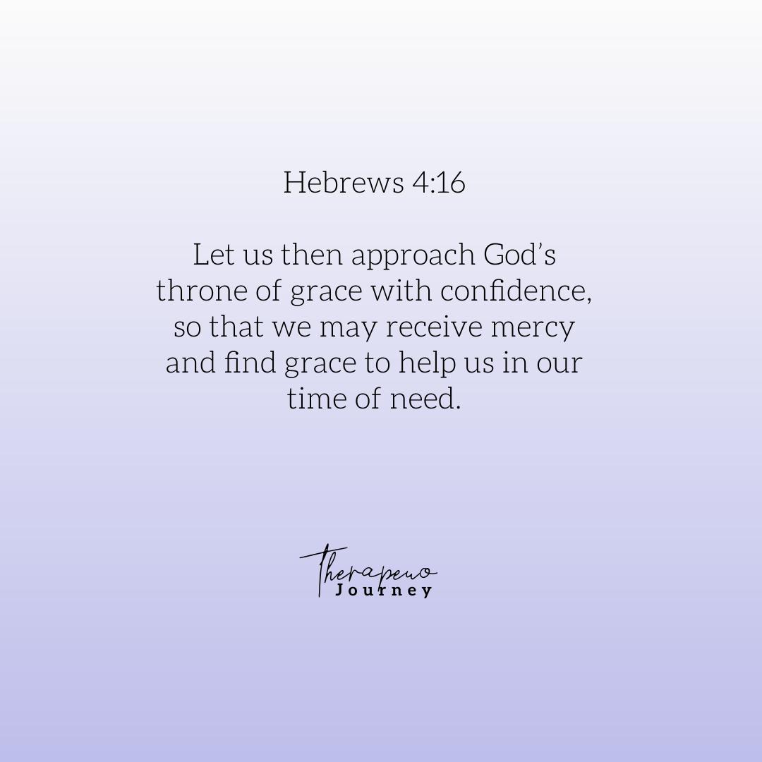 Let us then approach God’s throne of grace with confidence, so that we may receive mercy and find grace to help us in our time of need.
