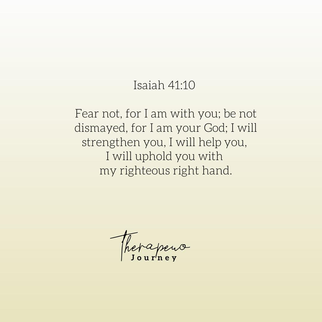 Fear not, for I am with you; be not dismayed, for I am your God; I will strengthen you, I will help you, I will uphold you with my righteous right hand.