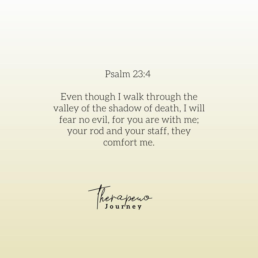 Even though I walk through the valley of the shadow of death, I will fear no evil, for you are with me; your rod and your staff, they comfort me.