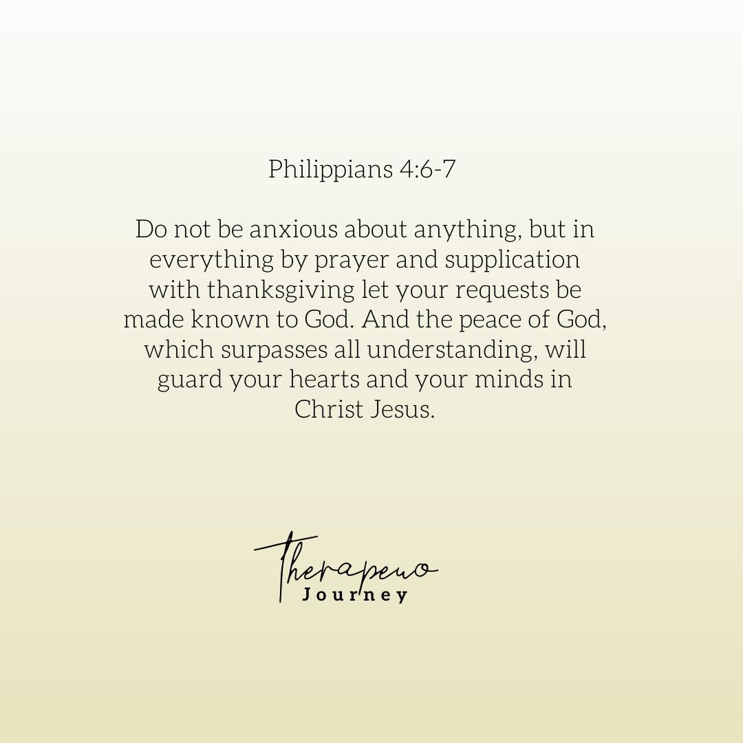 Do not be anxious about anything, but in everything by prayer and supplication with thanksgiving let your requests be made known to God. And the peace of God, which surpasses all understanding, will guard your hearts and your minds in Christ Jesus.